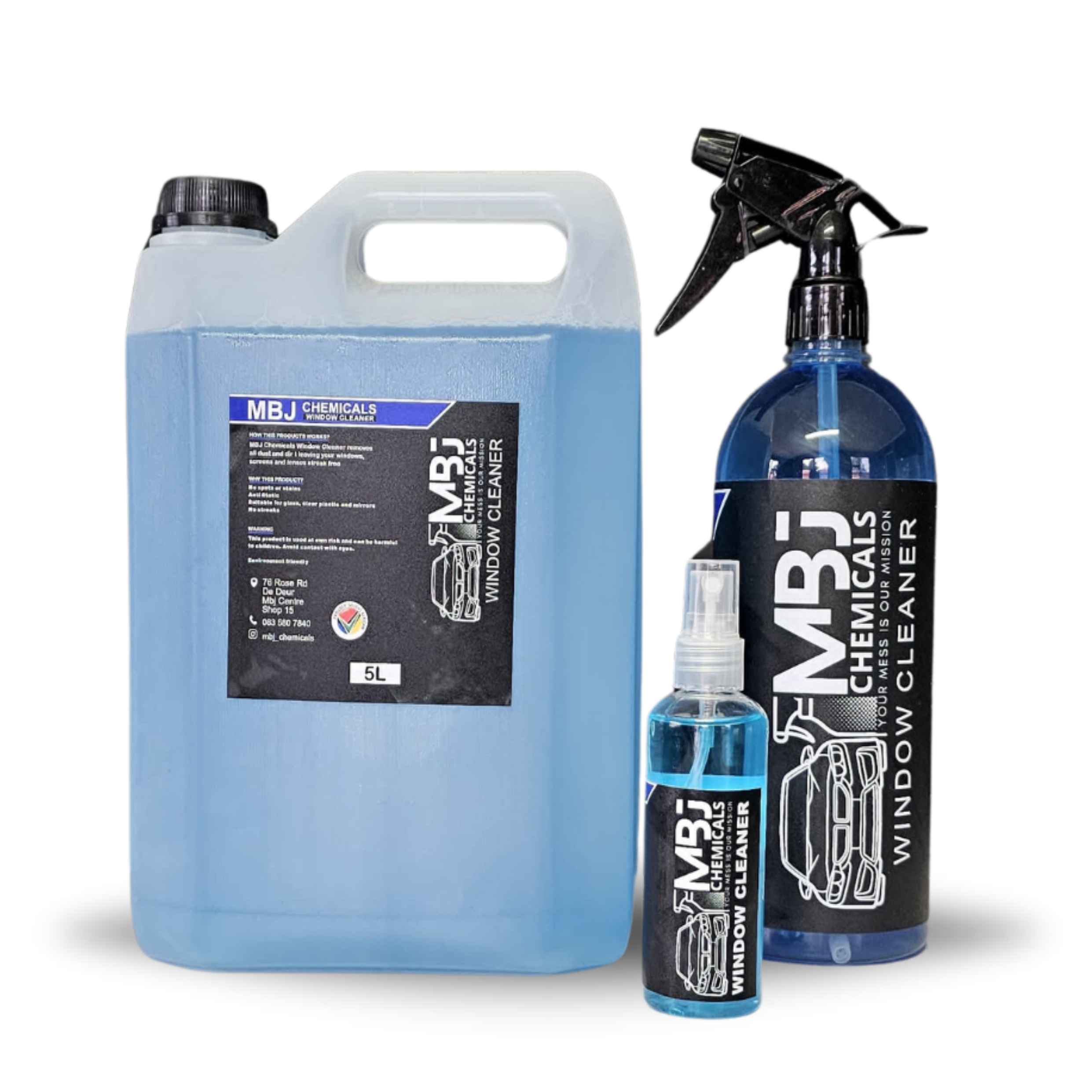 MBJ Chemicals Window Cleaner removes all dust and dirt, leaving your windows, screens and lense streak free.